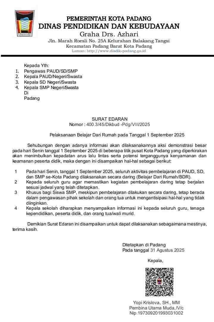 Mentreng.com | Padang – Dinas Pendidikan Kota Padang menerbitkan surat edaran belajar dari rumah bagi […]