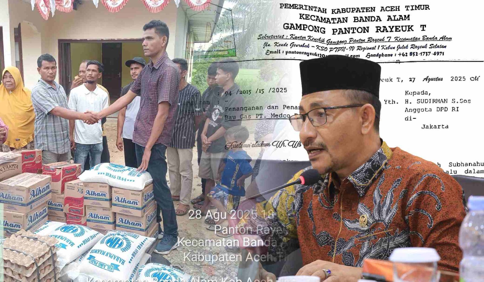 Terima Surat Pengaduan Warga, Haji Uma Kirim Bantuan Sembako Untuk Pengungsi Dampak Bau Gas PT. Medco E&P Malaka di Aceh Timur