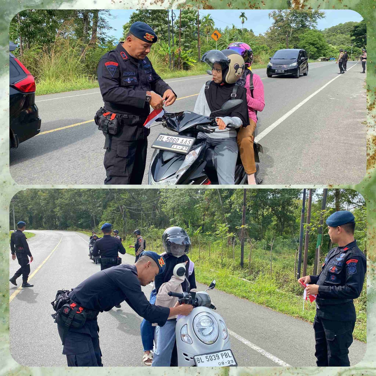 Memperingati HUT RI Ke 80 Brimob Aceh Bagikan Bendera Merah Putih