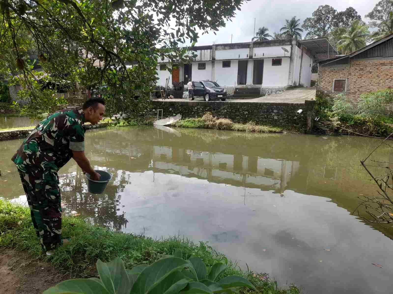 Anggota Koramil 05/X Koto Bersama Warga Binaan Pelihara 1.300 Ekor Ikan Nila