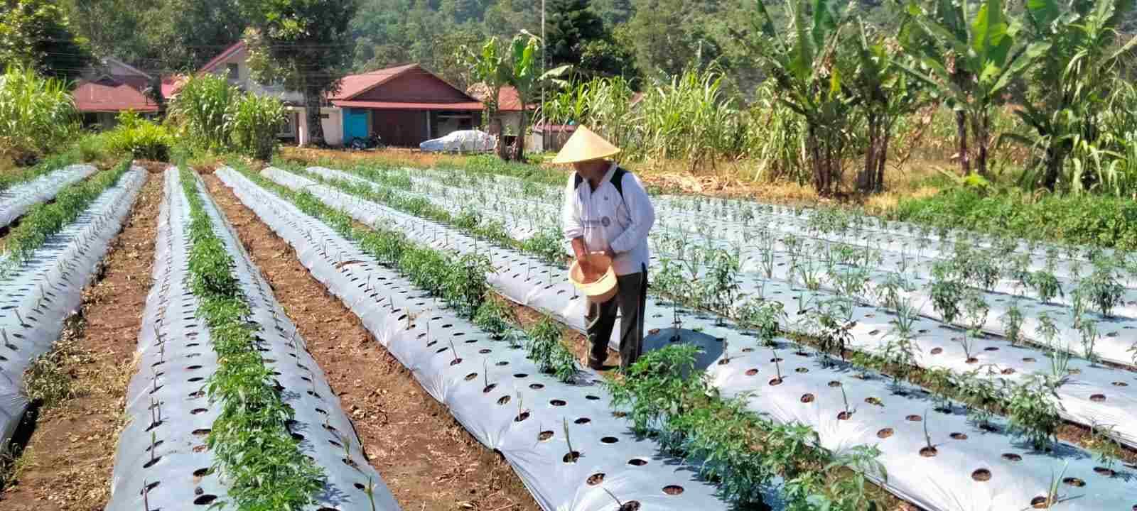Babinsa Koramil 01/PP Dampingi Petani Diwilayah Rawat Tanaman Terong Dengan Sistim Tumpang Sari
