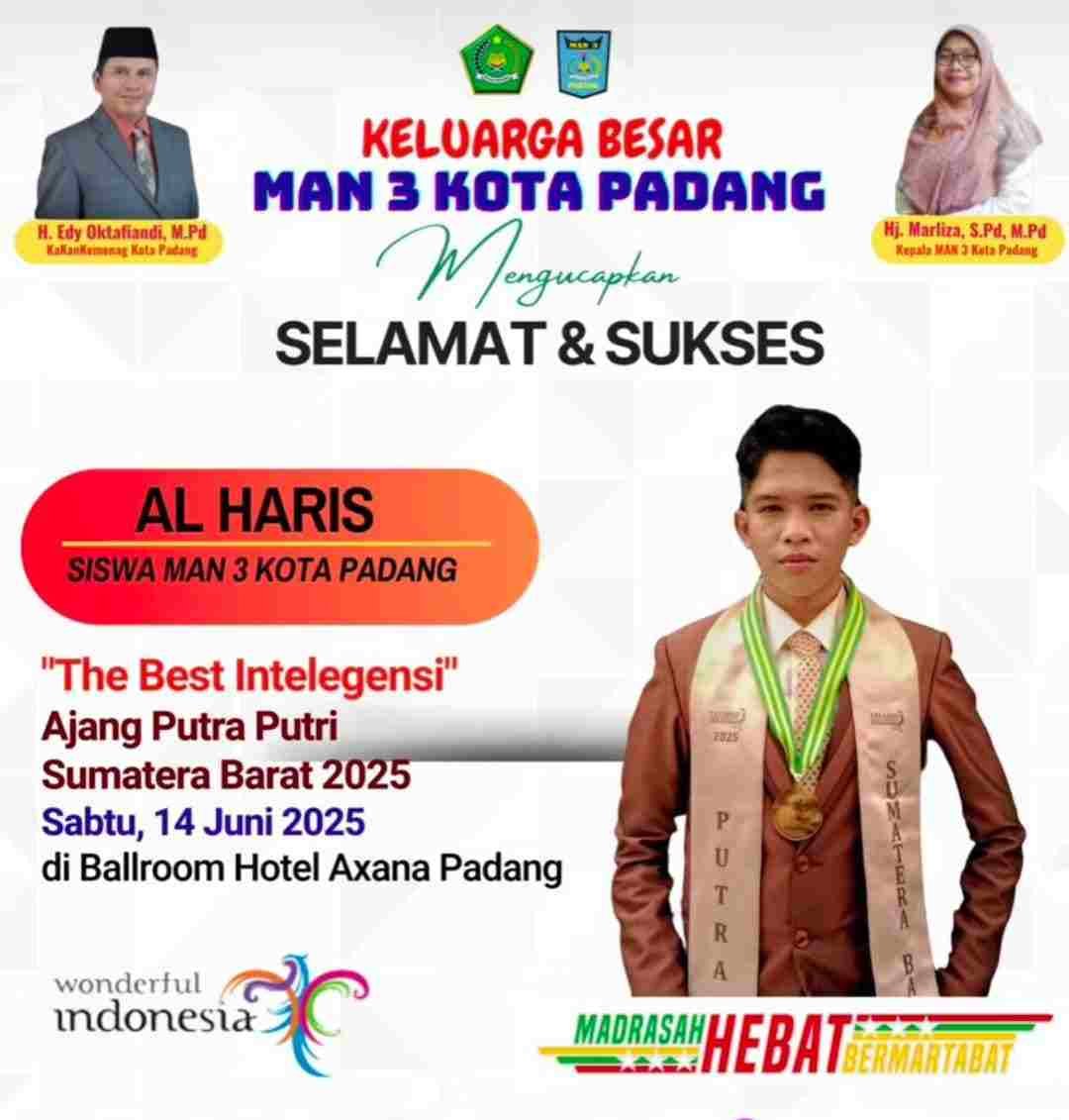Kembali ukir Prestasi, Siswa MAN 3 Padang Raih The Best Inteligensi di Ajang Putra Putri Sumatera Barat 2025