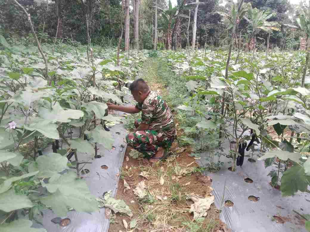 Babinsa Koramil 06/Sungayang Bersihkan Gulma Tanaman Terong