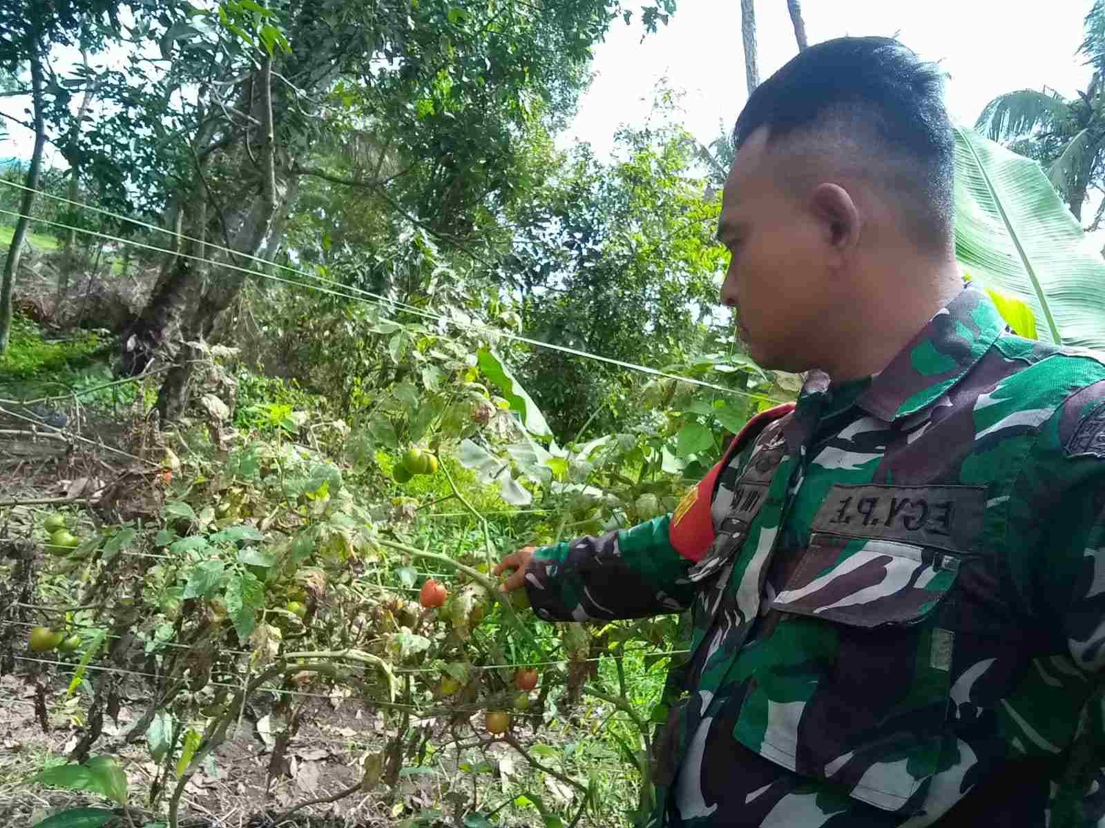 Anggota Koramil 02/LK Dampingi Warga Binaan Merawat Tanaman Tomat