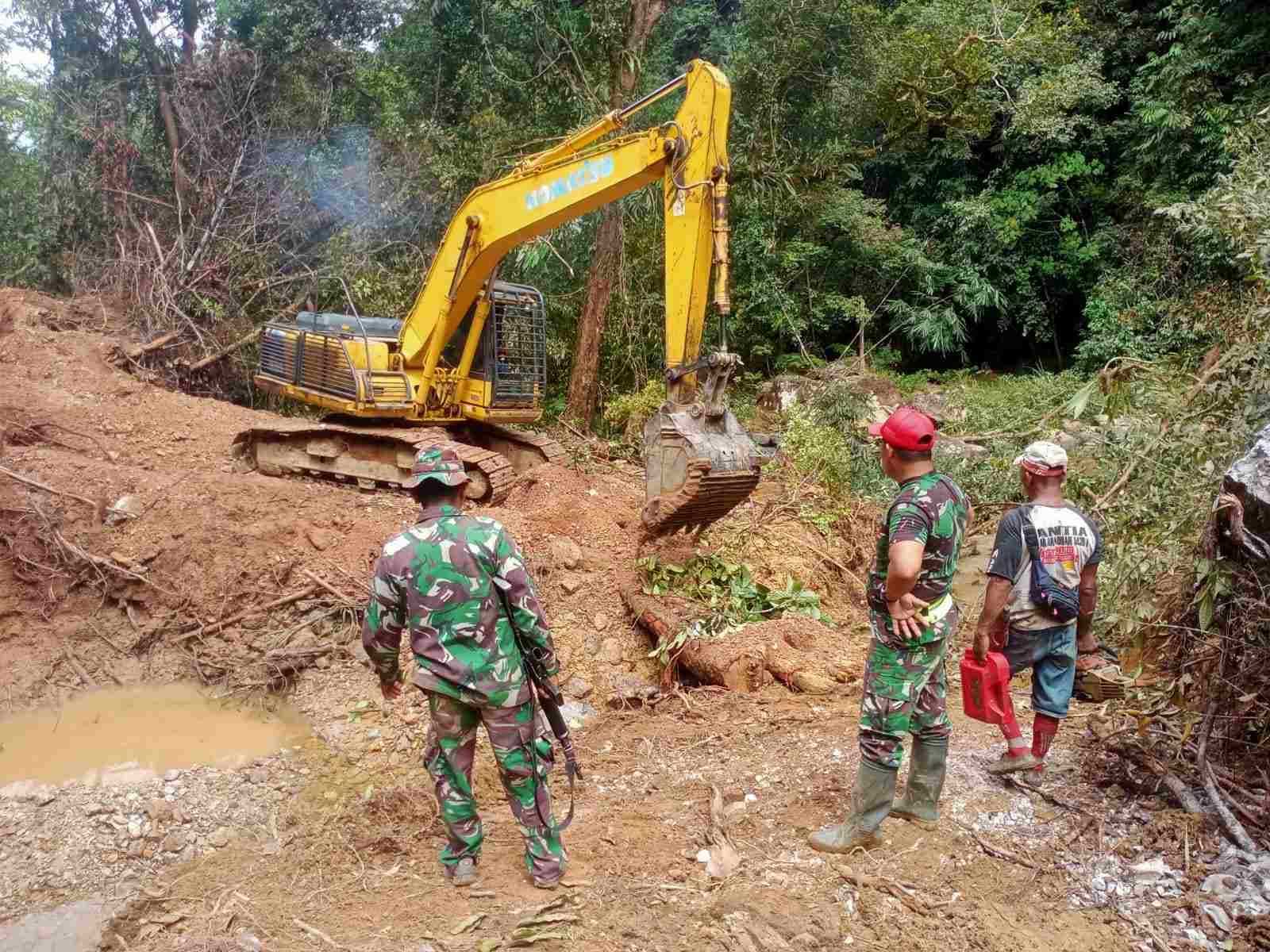 Tantangan Medan Terjal dan Curam Tak Surutkan Semangat Anggota Satgas TMMD ke-124 Kodim 0306/50 Kota
