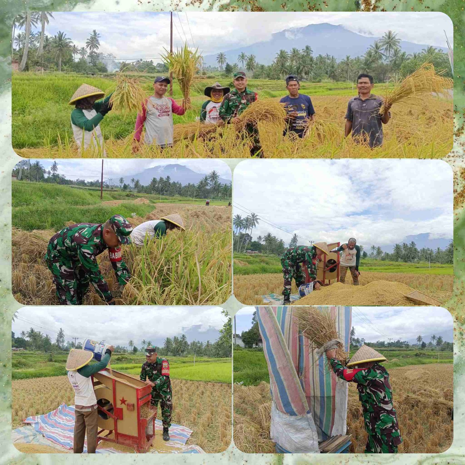 Hasil Panen Memuaskan Babinsa Dampingi Petani Panen Padi