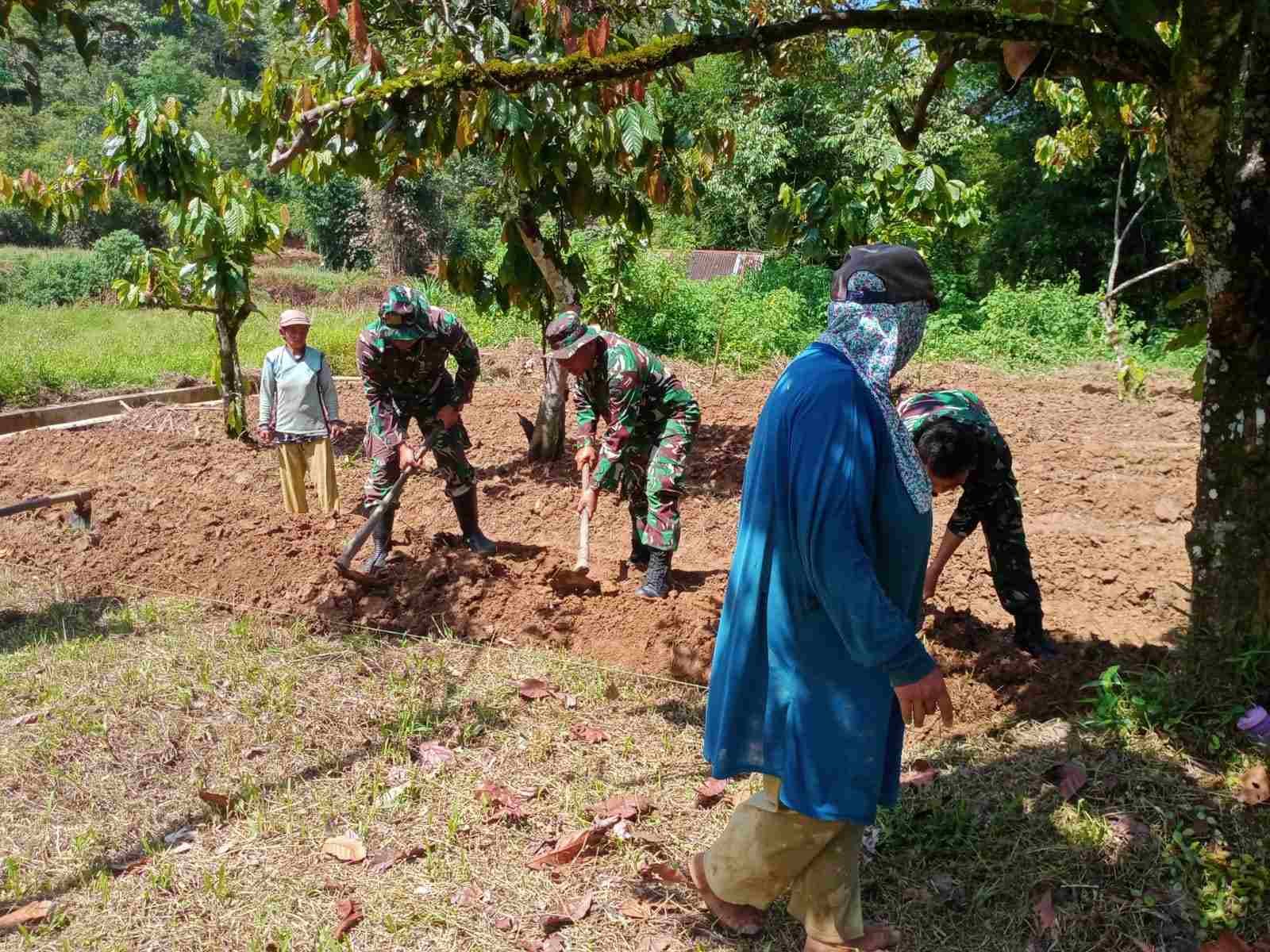 Anggota Satgas TMMD Kodim 0306/50 Kota Turun Langsung ke Lahan Pertanian Bantu Petani Siapkan Lahan Tanam Cabai