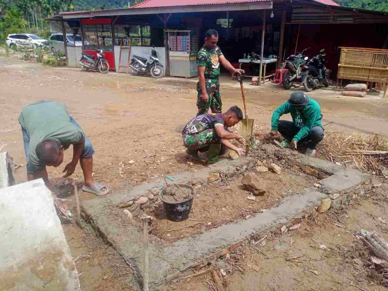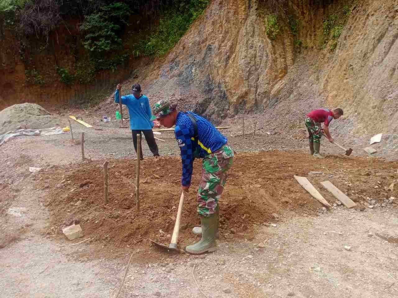 Pembuatan Pondasi RTLH Milik Syukriandi Mulai Dikerjakan Personil Satgas TMMD Kodim 0306/50 Kota