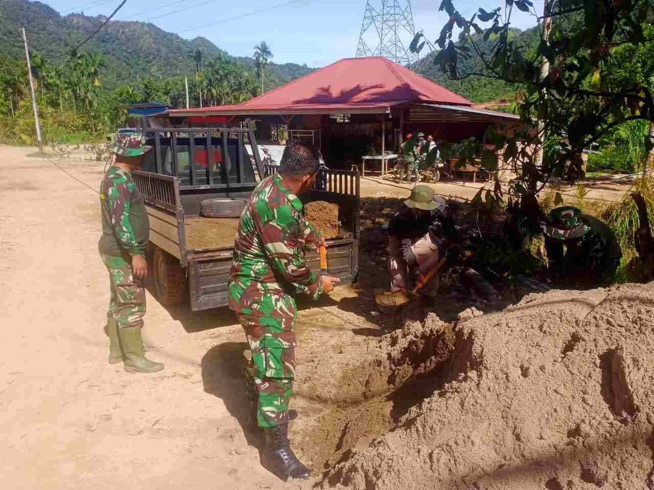 Waktu Istirahat Siang Dipergunakan Personil Satgas TMMD Untuk Pererat Kebersamaan Dengan Masyarakat