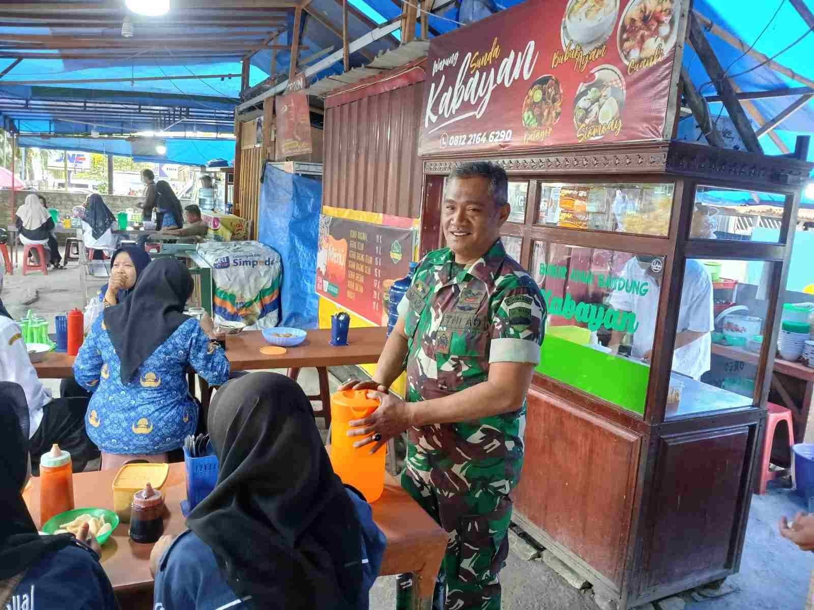 Babinsa Koramil 01/ PP Berjualan Bubur Ayam Untuk Sarapan Pagi