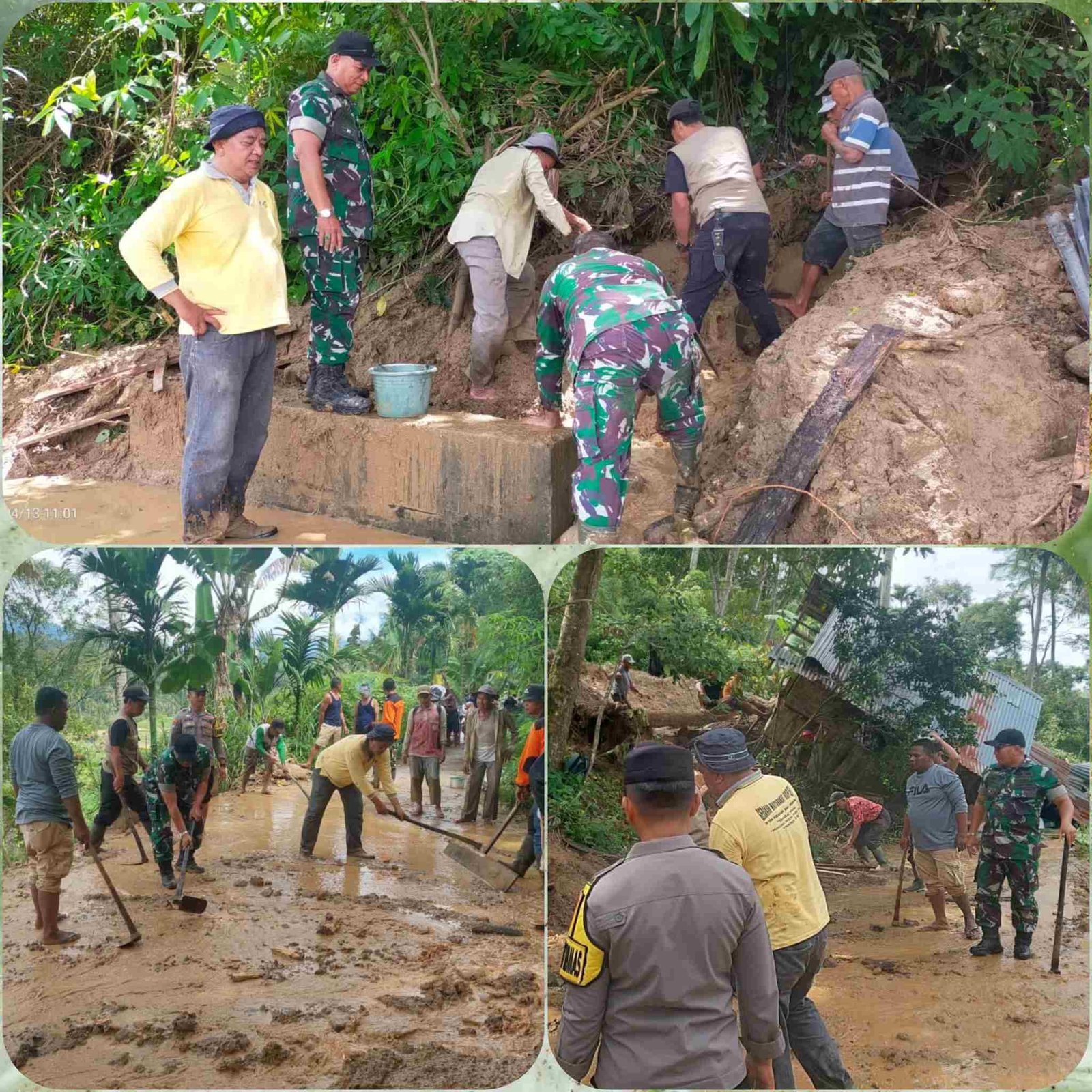 Babinsa 08/Batipuh Gotong Royong Bersihkan Bekas Longsor