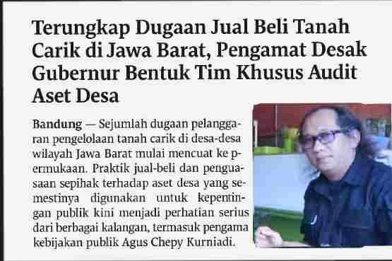 Terungkap Dugaan Jual Beli Tanah Carik di Jawa Barat, Pengamat Desak Gubernur Bentuk Tim Khusus Audit Aset Desa