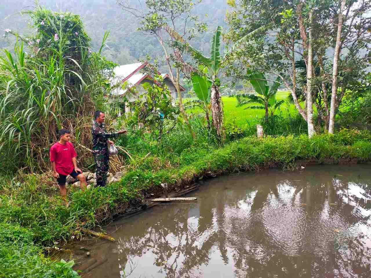 Anggota Koramil 05/X Koto Dampingi Warga Kembangkan Budidaya Ikan Nila