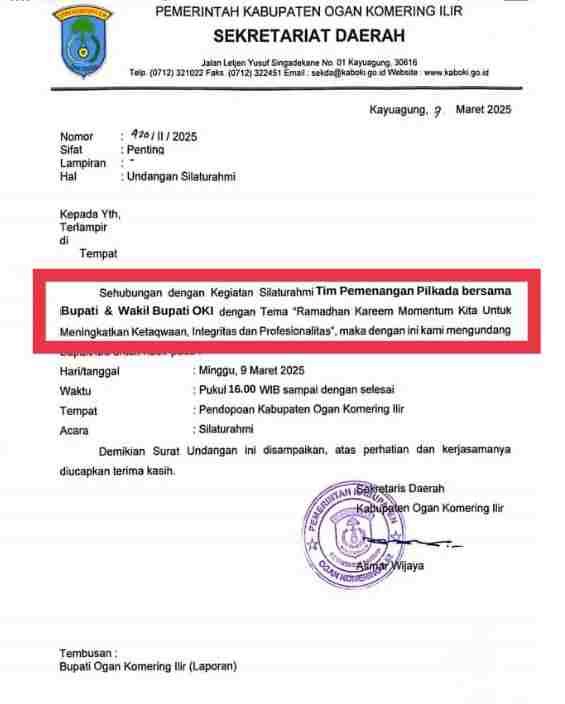 IWO Indonesia Kritisi Undangan Silaturahmi Sekda OKI Diduga Bernuansa Politik