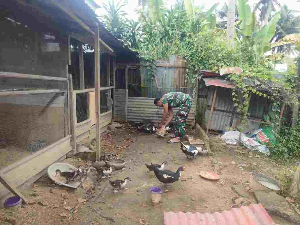 Babinsa Koramil 04/Lintau Buo Beternak Ayam dan Entok