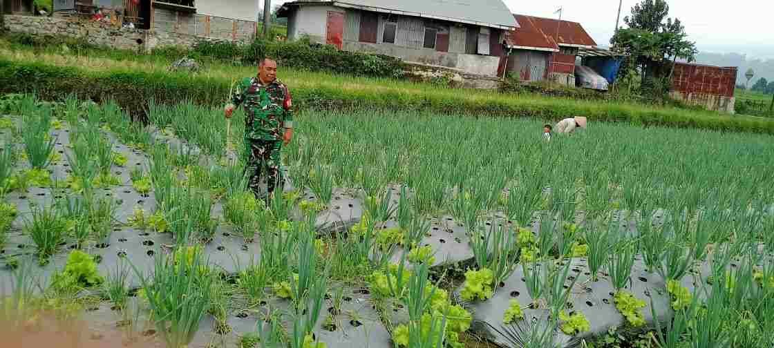 Babinsa Koramil 05/X Koto Bantu Petani Bersihkan Tanaman Daun Bawang