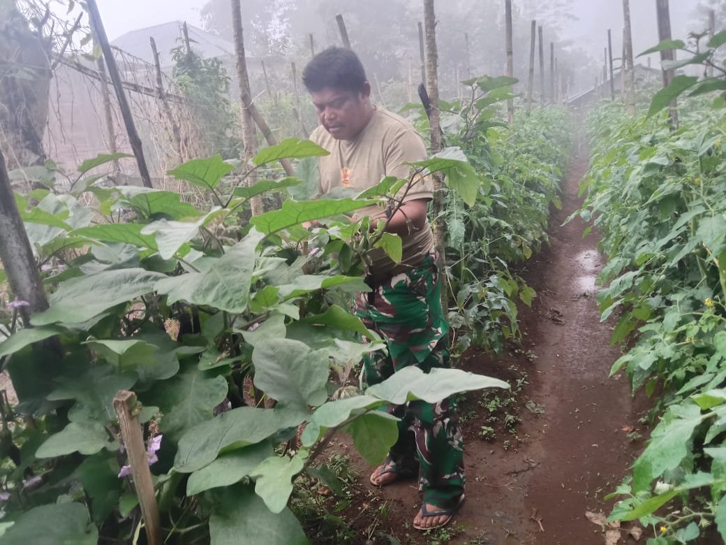 Sertu Syafrizal Babinsa Koramil 06/Sungayang Rawat Tanaman Terong Dari Gulma