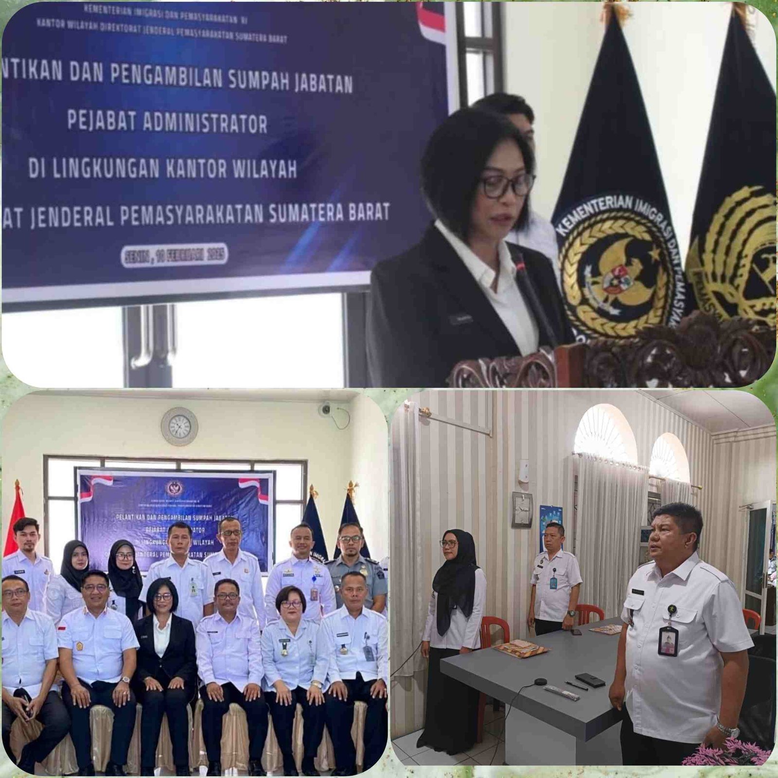 Kepala Kantor Wilayah Ditjenpas Sumatera Barat Lantik 3 Pejabat Administrator dan Berikan Arahan Terhadap Jajaran Pemasyarakatan Sumbar