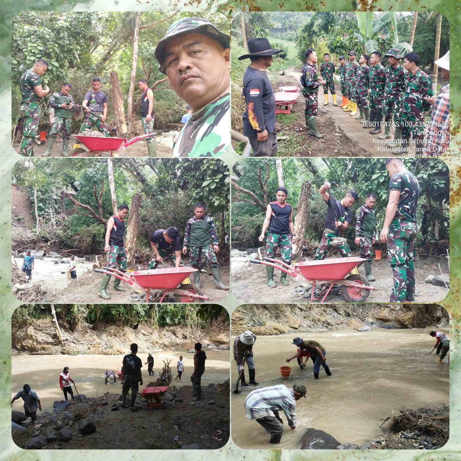 Prajurit TNI dan Warga Gotong Royong Melanjutkan Pembuatan Jembatan Gantung