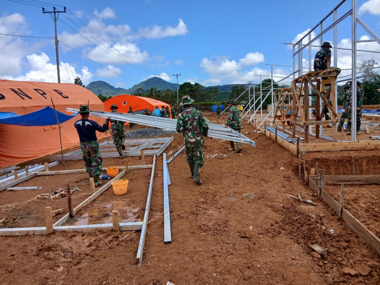 Kodim 0307/Tanah Datar Mulai Progres Pembangunan Huntara untuk Warga Terdampak Bencana Alam di Nagari Bungo Tanjuang