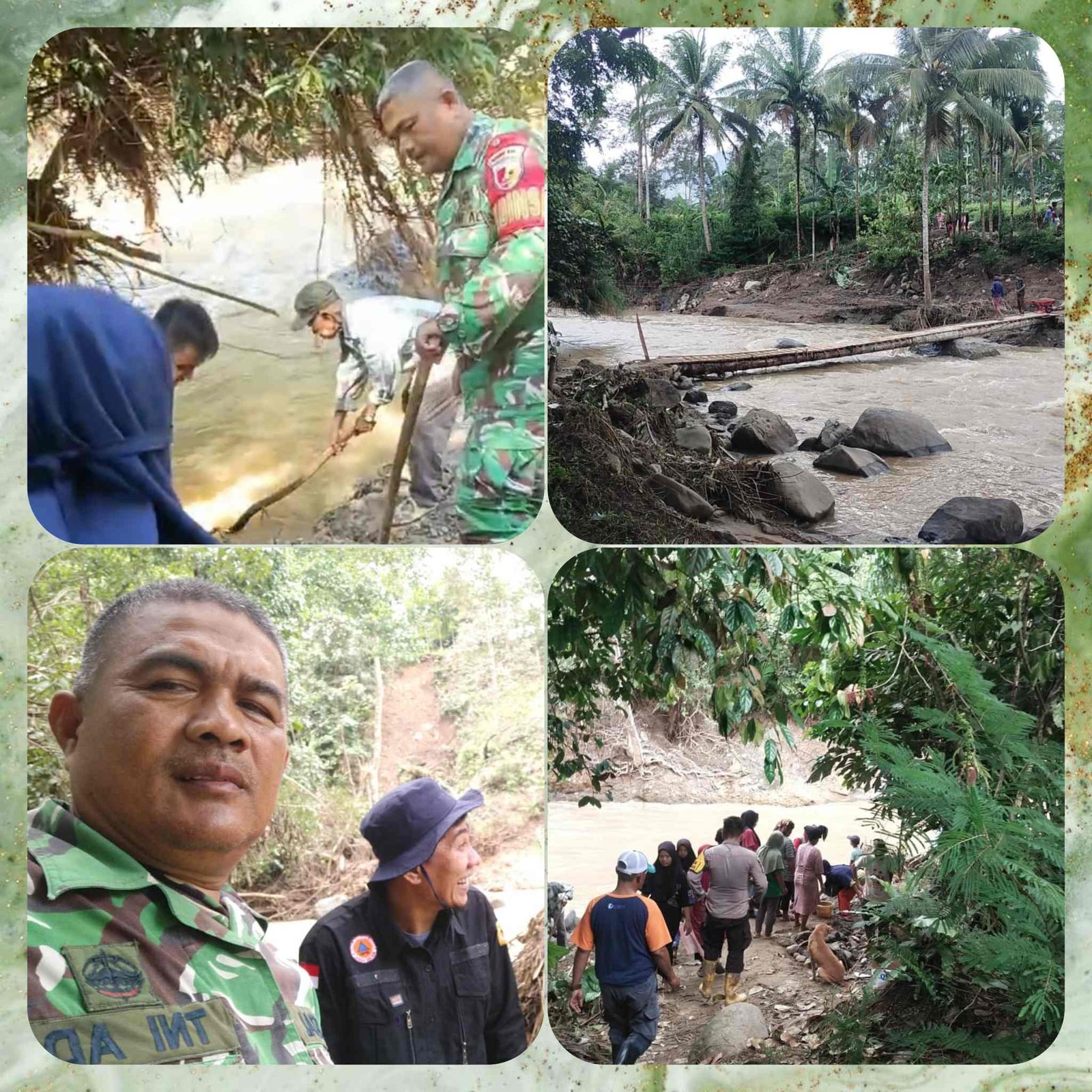 Babinsa Koramil 08/BTP Bersama Warga Goro Bangun Jembatan Gantung Pasca Banjir Bandang