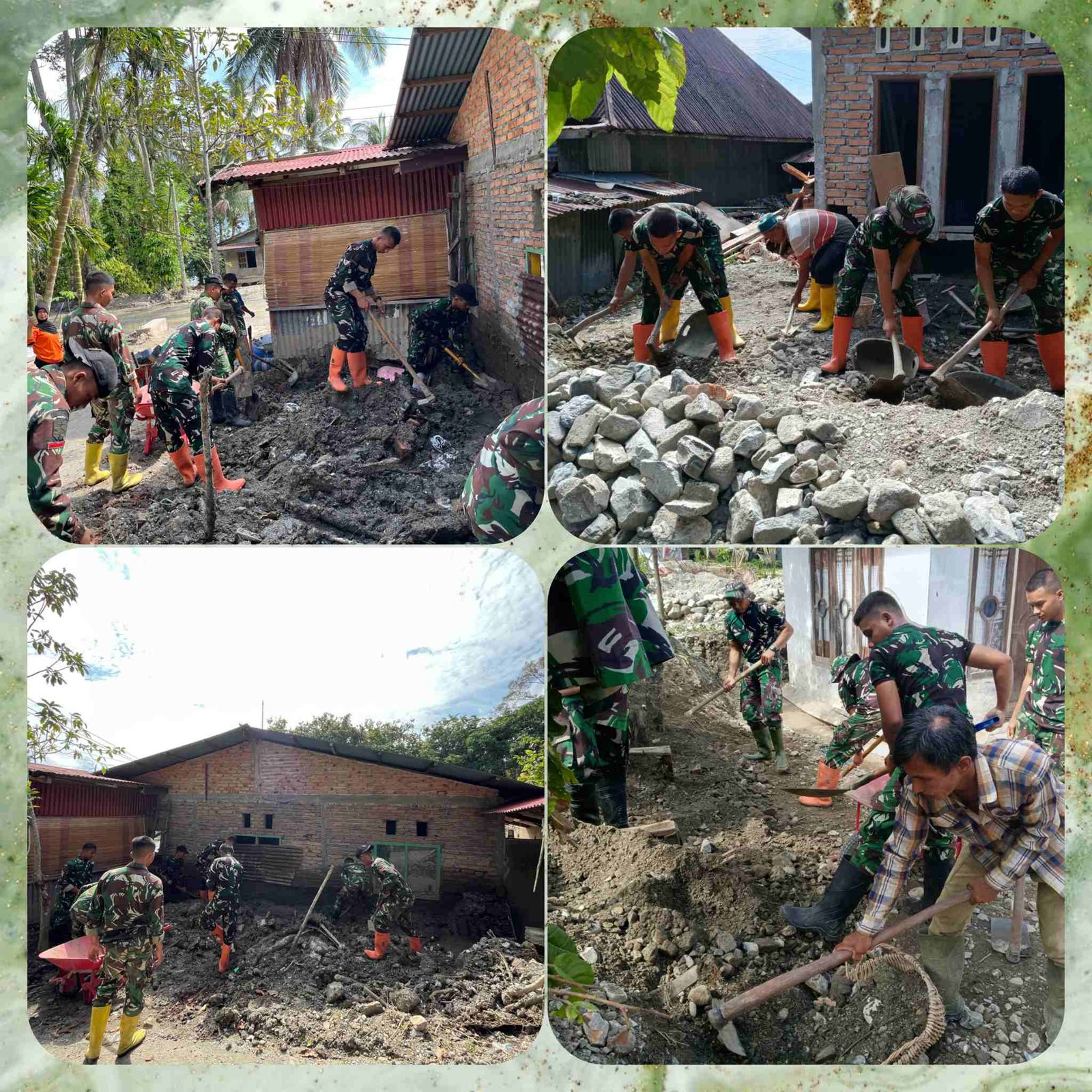 Personel Gabungan Kodim 0307/Tanah Datar, Yonif 131/Brs dan YTP 896 Terus Hadir Bantu Warga Bersihkan Rumah Terdampak Banjir Bandang