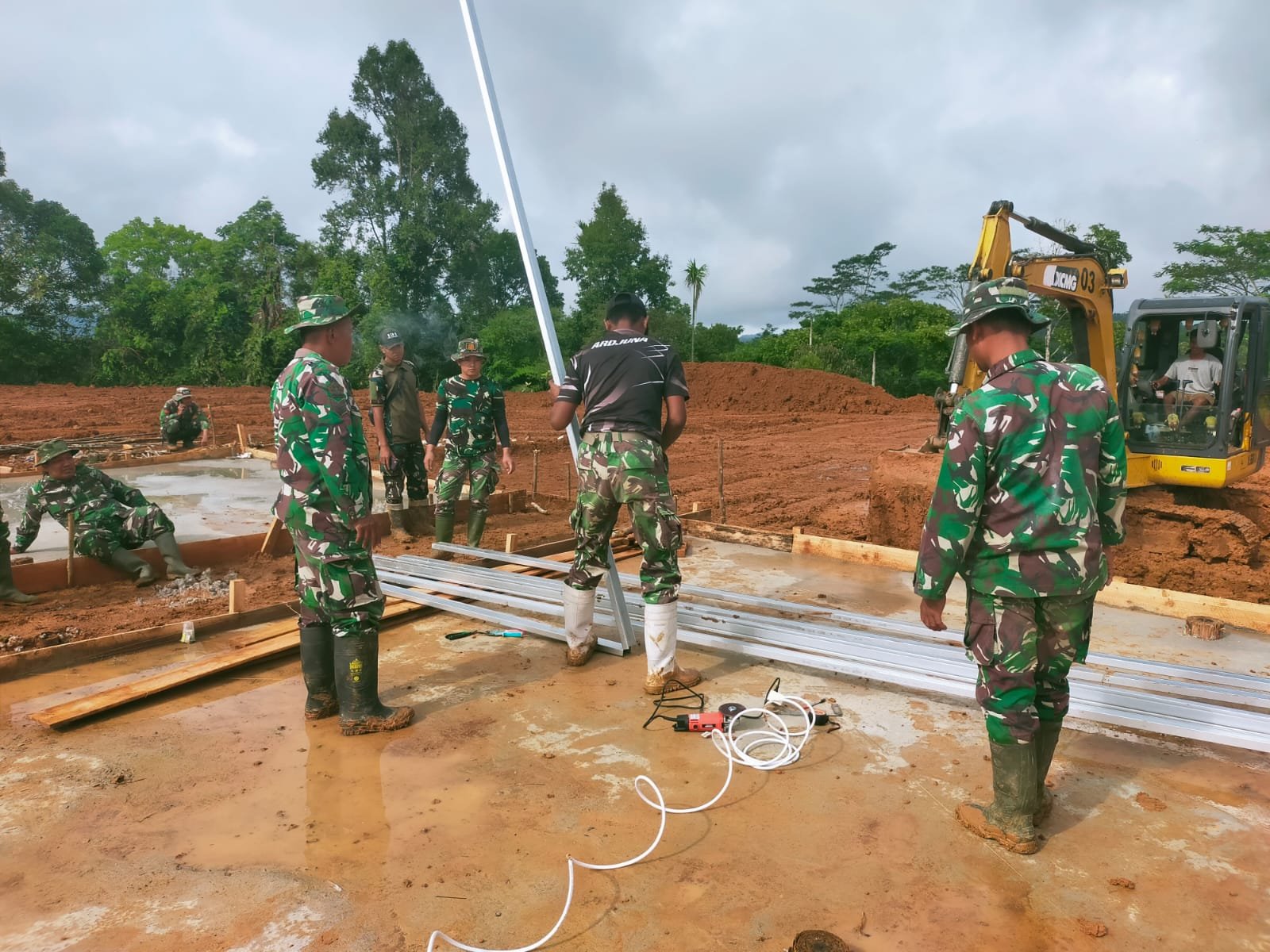 Satgas TNI Lanjutkan Pembangunan HUNTARA Bagi Masyarakat Terdampak Bencana di Nagari Koto Tinggi