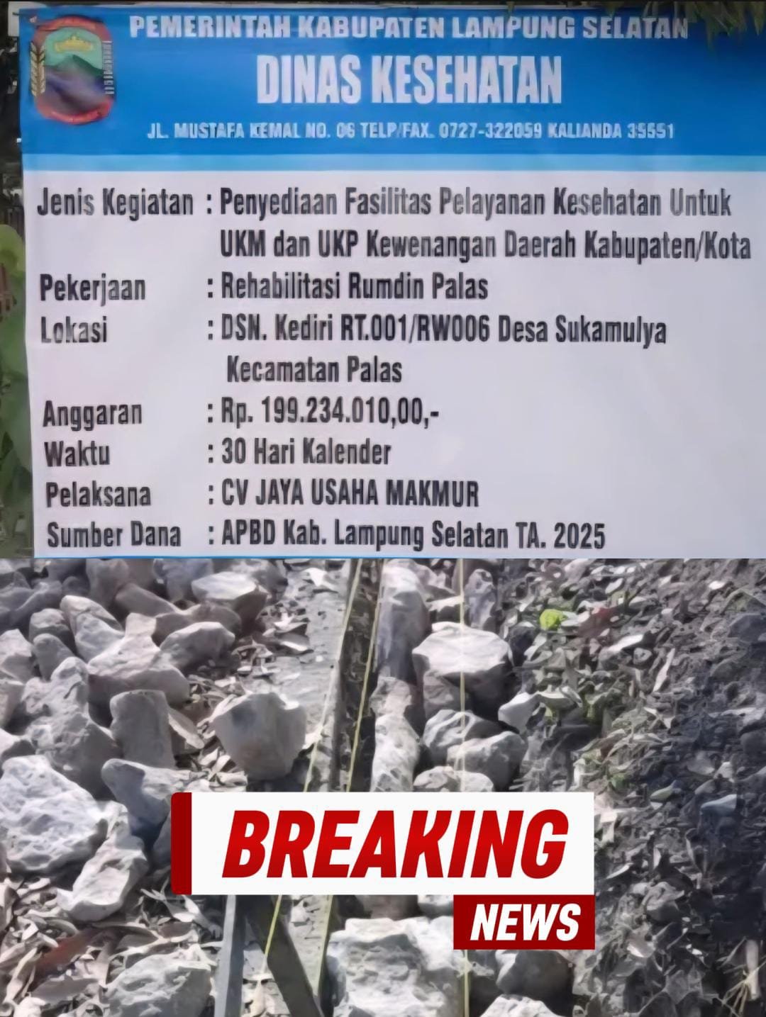 Diduga Ugal-ugalan: Proyek Rehabilitasi Rumdin Palas Rp199 Juta Dikebut 30 Hari, Metode Pasangan Batu Dinilai Tak Sesuai Kaidah Teknis