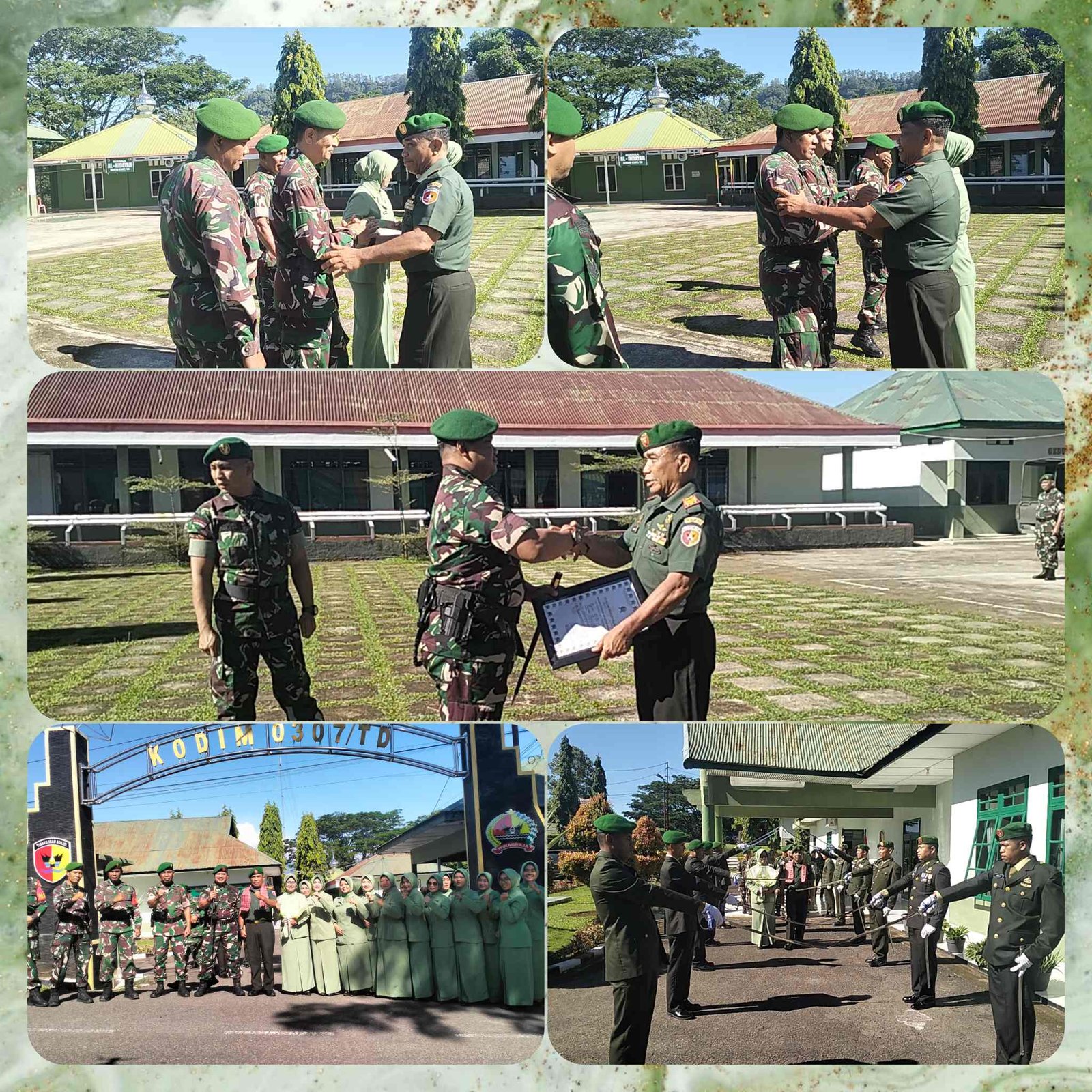 Dandim 0307/TD Pimpin Upacara Korps Rapor Purna Tugas & Berikan Penghargaan Atas Loyalitas Prajurit