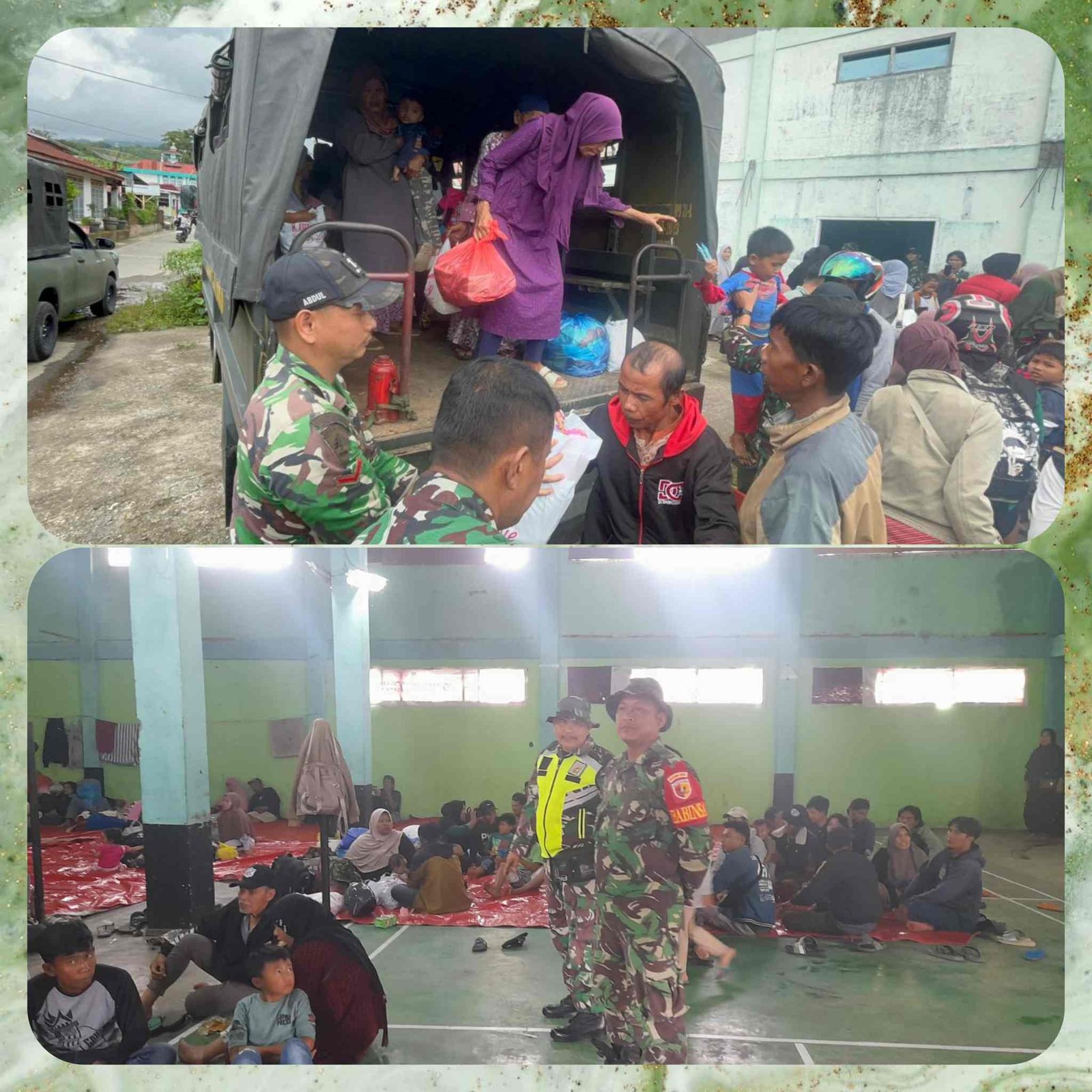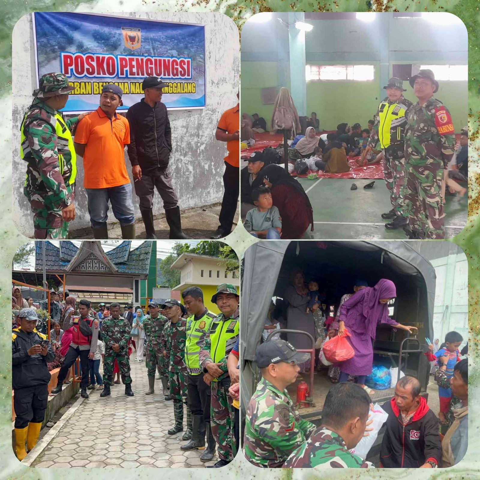 Personel Koramil 05/X Koto dan Polres Padang Panjang Bantu Evakuasi 161 Jiwa ke Gedung Serbaguna X Koto