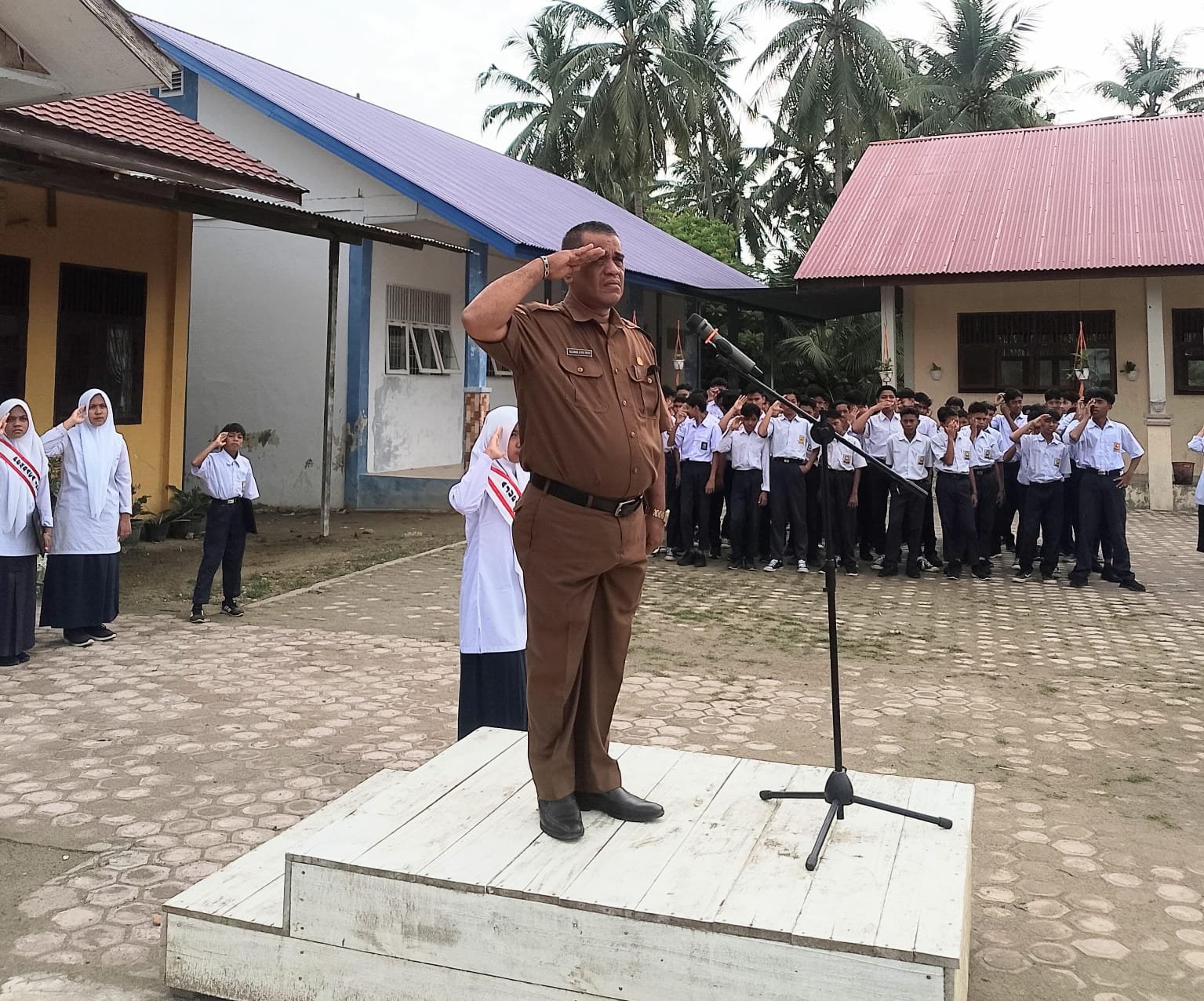 Sulman Kepala Sekolah SMPN 1 Kutamakmur Pimpin Upacara Bendera Perdana