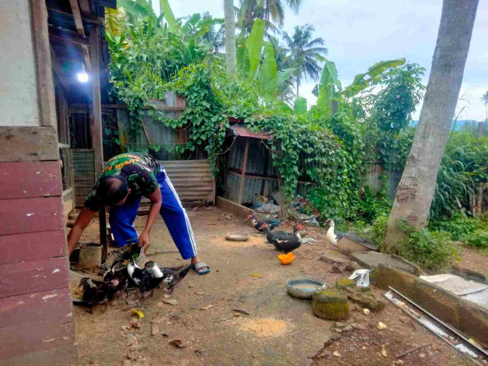 Babinsa Koramil 04/Lintau Buo Beternak Ayam dan Entok