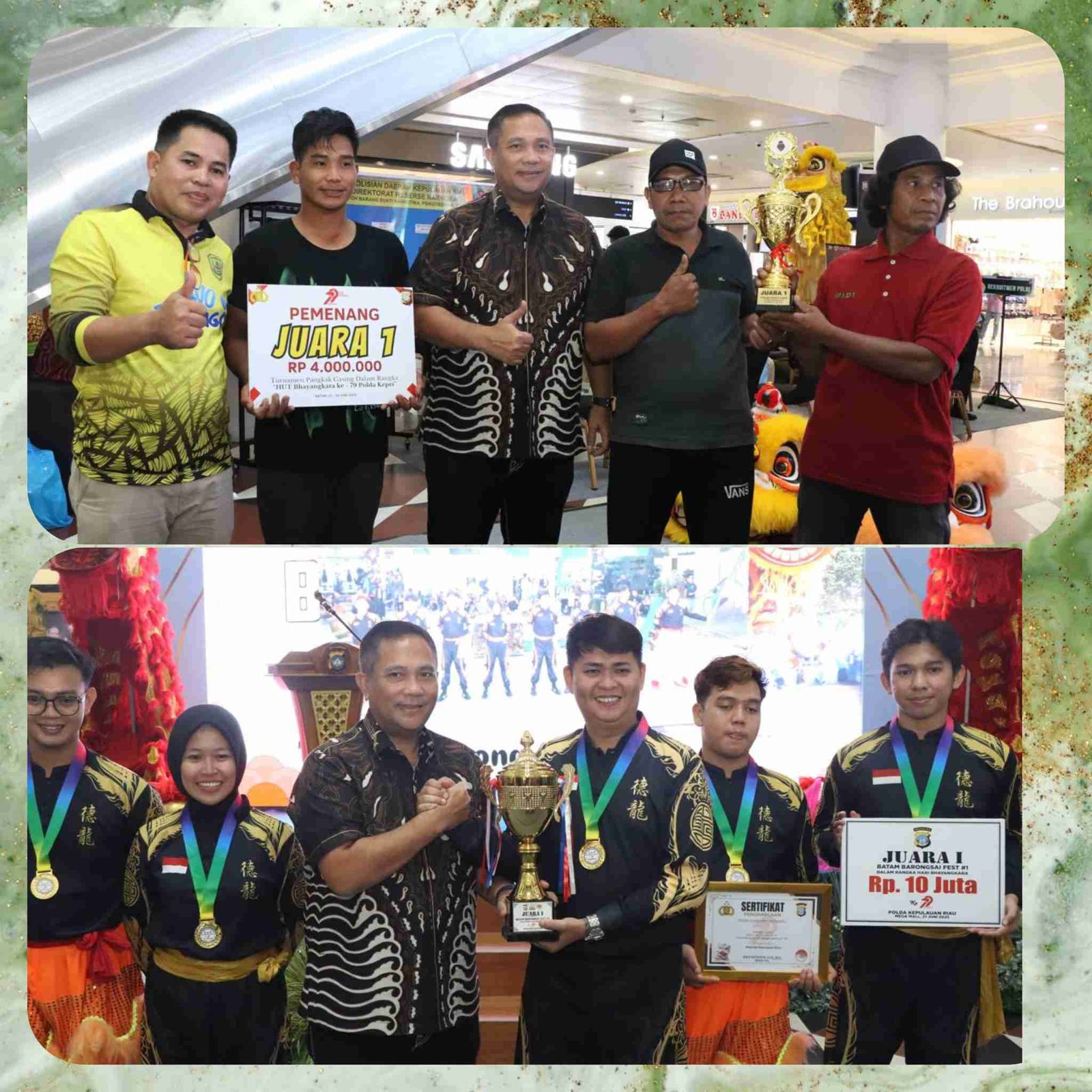 Mentereng.com  |  Batam – Rangkaian peringatan Hari Bhayangkara ke-79 semakin semarak dengan digelarnya Lomba Barongsai dan Gasing oleh Polda Kepulauan Riau. Acara penutupan berlangsung meriah di atrium Mega Mall Batam Center, Sabtu (21/6/2025), dan disaksikan langsung oleh Kapolda Kepri Irjen. Pol. Asep Safrudin, S.I.K., M.H.