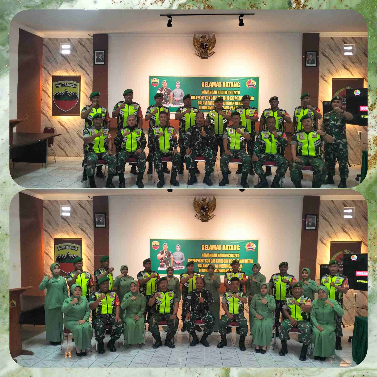 Kedatangan Dandim 0307/TD ke Koramil 01/PP di sambut langsung oleh Danramil Kapten Inf Hanifan Sirait beserta anggota dan Ketua Persit KCK Ranting 02 Koramil 01 Padang Panjang.