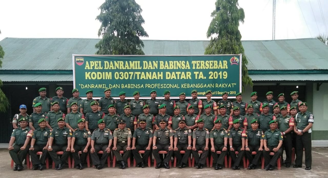 Apel Danramil dan Babinsa kodim 0307/Tanah Datar Tahun Anggaran 2019 mengusung tema “Danramil dan Babinsa profesional kebanggaan rakyat.” Pelaksanaan apel Danramil dan Babinsa ini adalah merupakan kegiatan untuk meningkatkan profesionalisme danramil maupun Babinsa.