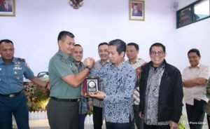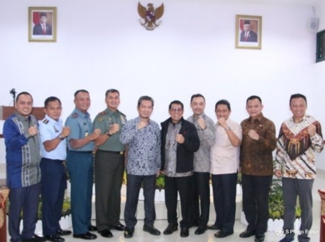 rombongan Tim Komisi I DPR RI disambut langsung oleh Danrem 032/Wbr Brigjen TNI Kunto Arief Wibowo, S.I.P., Danlantamal II Padang, Danlanud Sutan Sjahrir (Diwakili) beserta para Staf Makorem di lobby Makorem 032/Wbr, Jum’at (20/12).