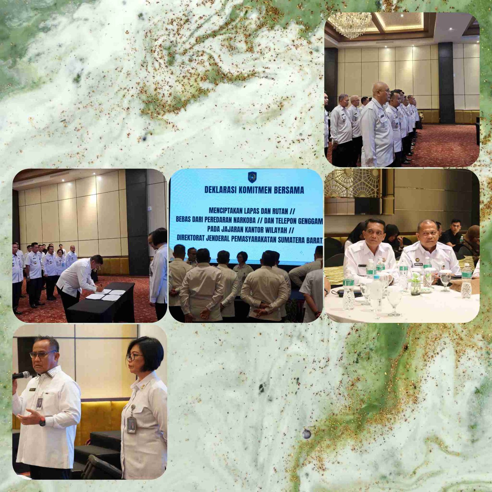 Padang, INFO_PAS – Jajaran Kantor Wilayah Direktorat Jenderal Pemasyarakatan Sumatera Barat yang dipimpin secara langsung oleh Kakanwil melaksanakan deklarasi komitmen Zero Handphone, Pungutan Liar dan Narkoba (Halinar). Pada gelaran tersebut Deklarasi yang disertai penandatanganan komitmen dilaksanakan oleh Seluruh Kepala UPT Pemasyarakatan lingkungan Sumatera Barat yang dipimpin oleh Kepala Kantor Wilayah Marselina Budiningsih yang akan segera Purnabhakti didampingi oleh Kepala Kantor Wilayah yang baru Kunrat Kasmiri, Rabu (28/5/25).