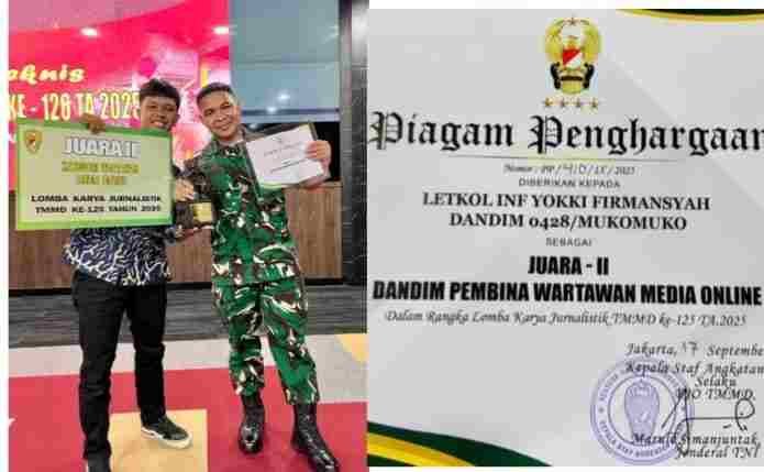 Kodim 0428/Mukomuko Raih Juara 2 Lomba Karya Jurnalistik TMMD ke-125 Kategori Wartawan Media Onlin