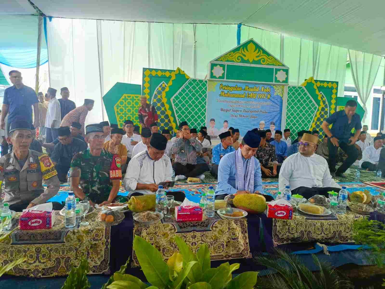 Dalam sambutannya, Kades Mekar Jaya Pudin, SE mengajak masyarakat untuk semakin mendekatkan diri kepada Allah SWT di bulan maulid ini.