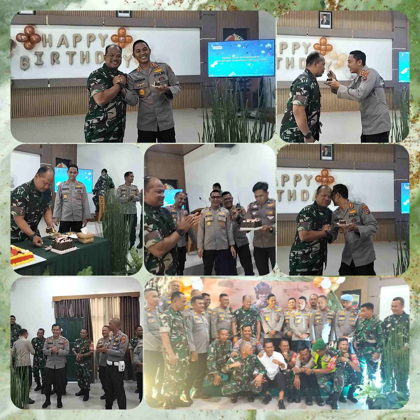 Harmonis dan mesra, Kapolres Tanah Datar AKBP Nur Ichsan Dwi Septianto, S.H.,S.I.K., M.I.K bersama anggota memberi kejutan ulang tahun kepada Dandim 0307/Tanah Datar Letkol Inf Agus Priyo Pujo Sumedi, S.I.P., M.Han, Senin (25/08/2025).