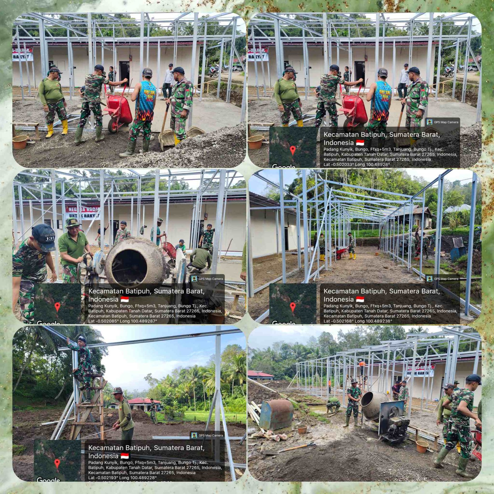 Kodim 0307/Tanah Datar Terus Kejar Pengerjaan Huntara di Jorong Padang Kunyiak