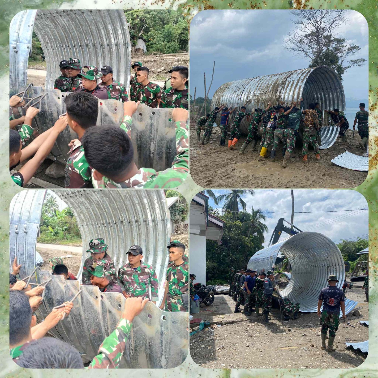 Pastikan Terpasang Kokoh, TNI Satukan Kekuatan Rakit Jembatan Aramco di Batipuh Selatan