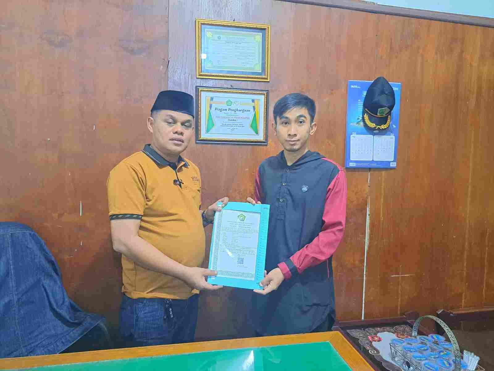 Mentreng.com | Kota Solok – Telah diserahkan secara resmi Izin Operasional pendirian Madrasah Diniyah Takmiliyah Awaliyah (MDTA) Ula Jihad yang beralamat di Perumahan Griya Permata, Kampung Jawa, Kota Solok. Penyerahan ini dilakukan oleh Kasi Pendidikan Diniyah dan Pondok Pesantren (PD Pontren), Fauzi kepada Kepala MDTA, Diki, Selasa (27/05/25)