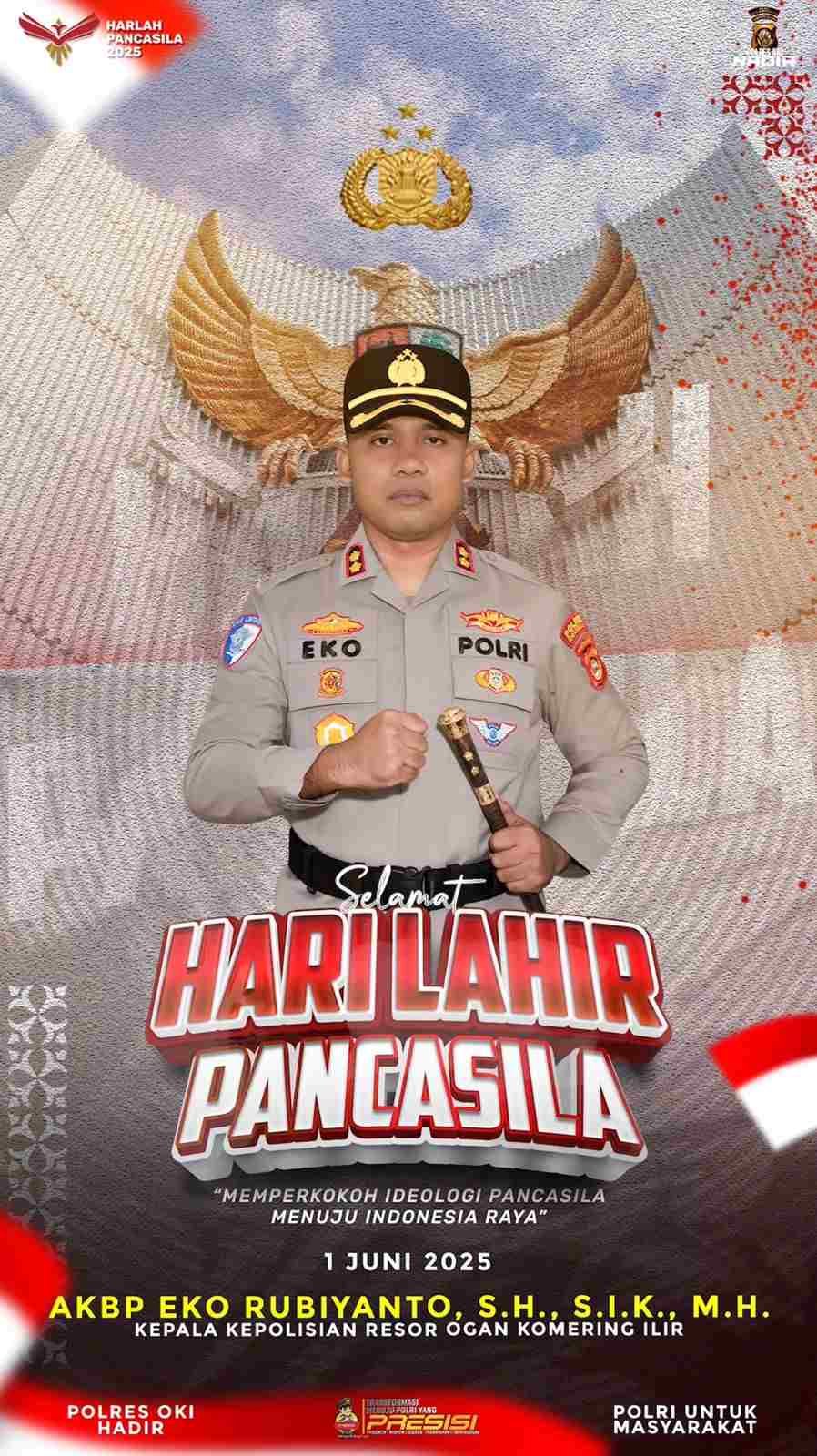 Kapolres OKI, AKBP Eko Rubiyanto, S.H., S.I.K., M.H., menyampaikan bahwa peringatan Hari Lahir Pancasila bukan sekadar kegiatan seremonial, tetapi harus menjadi momentum untuk memperkuat kembali semangat persatuan dan kesatuan bangsa.