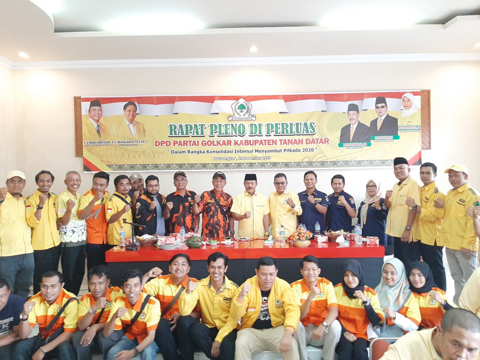 Jadi barusan dilaksanakan rapat pleno diperluas DPD Partai Golkar Kabupaten Tanah Datar, yang diikuti oleh pimpinan agar disiplin terhadap pimpinan kecamatan Se Tanah Datar. Pengus DPD Golkar organisasi sayap Partai Golkar , Kosgoro, KWK, perkembang opsi.