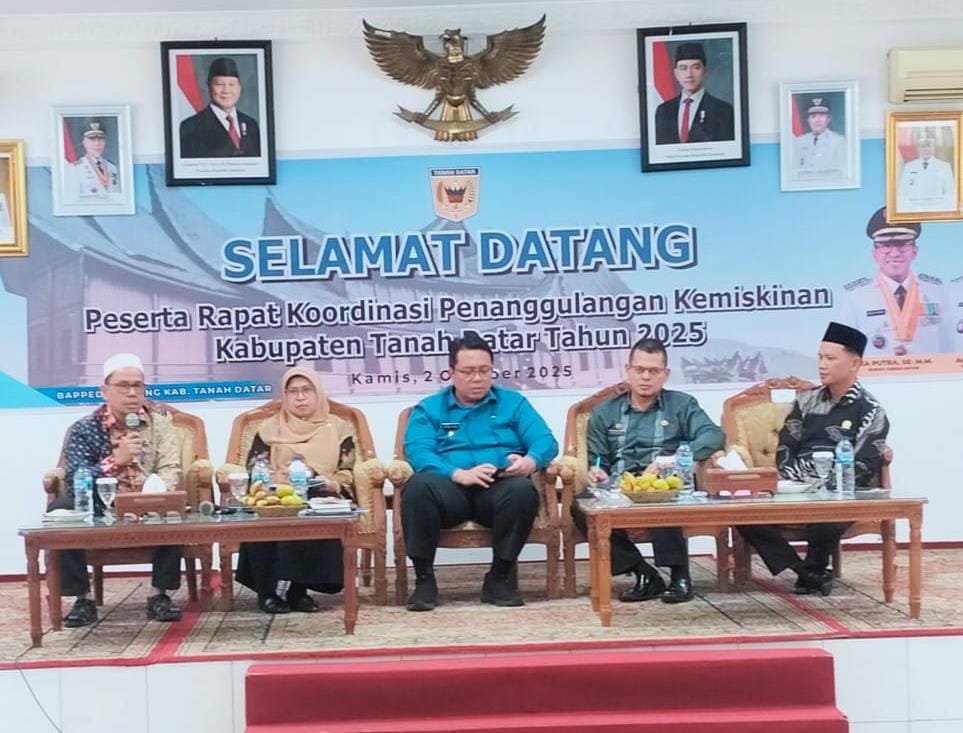 Mentrengnews.com | Tanah Datar, 2 Oktober 2025 – Pemerintah Kabupaten Tanah Datar menggelar Rapat Koordinasi Penanggulangan Kemiskinan yang dibuka langsung oleh Wakil Bupati Tanah Datar, Ahmad Fadly, S.Pi. Acara ini menjadi momentum penting dalam upaya menanggulangi kemiskinan di Kabupaten Tanah Datar dengan menghadirkan berbagai stakeholder terkait.