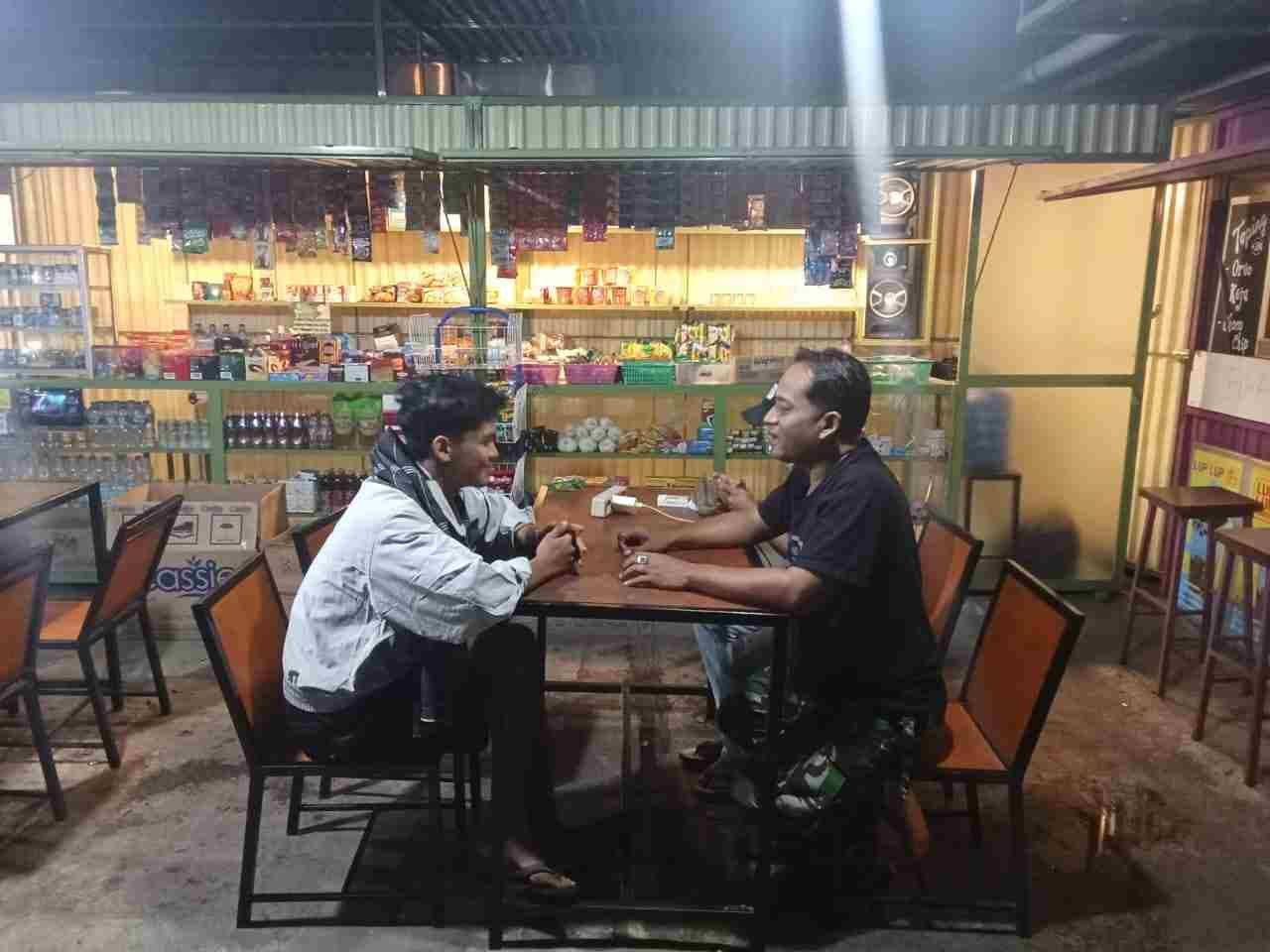 Anggota Koramil 02/LK Komsos Bersama Warga di Kedai Kelontong Milik Sendiri