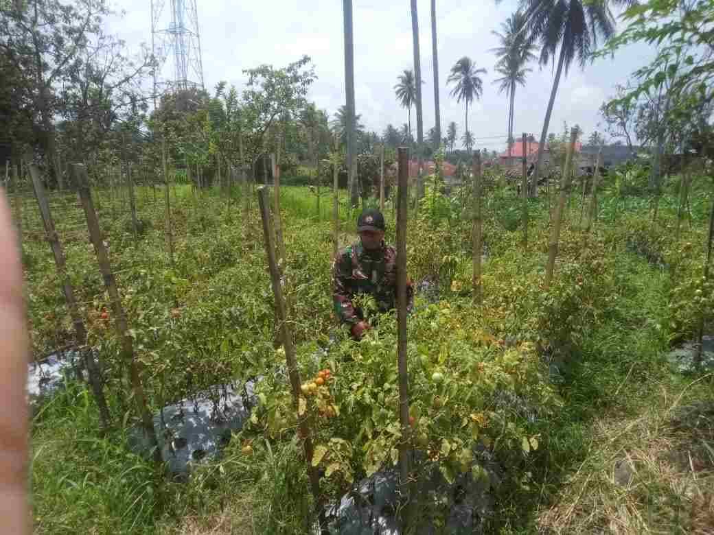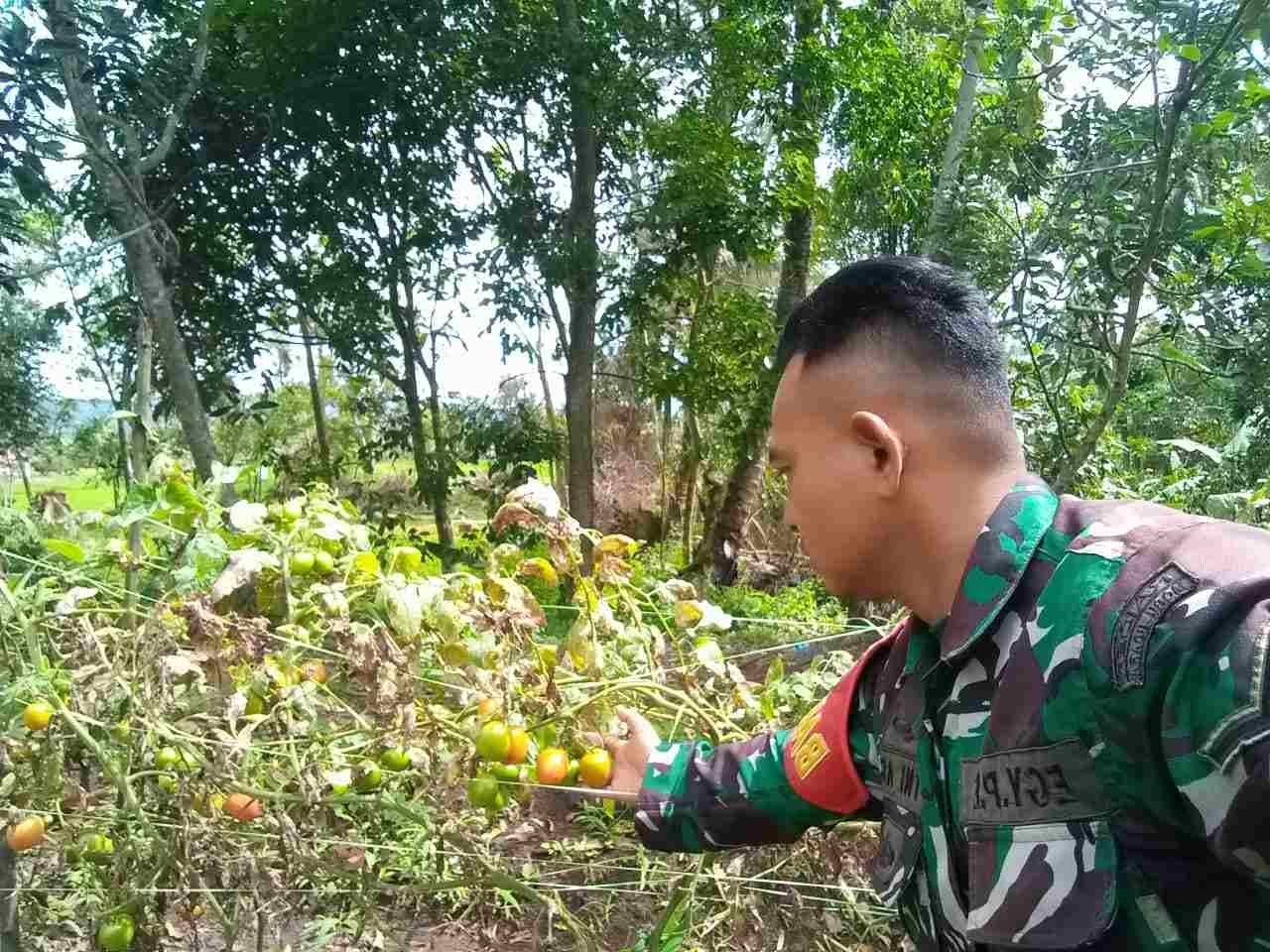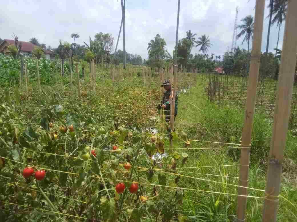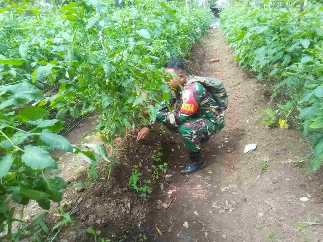 Babinsa Koramil 02/Lima Kaum Dampingi Petani Merawat Tanaman Tomat