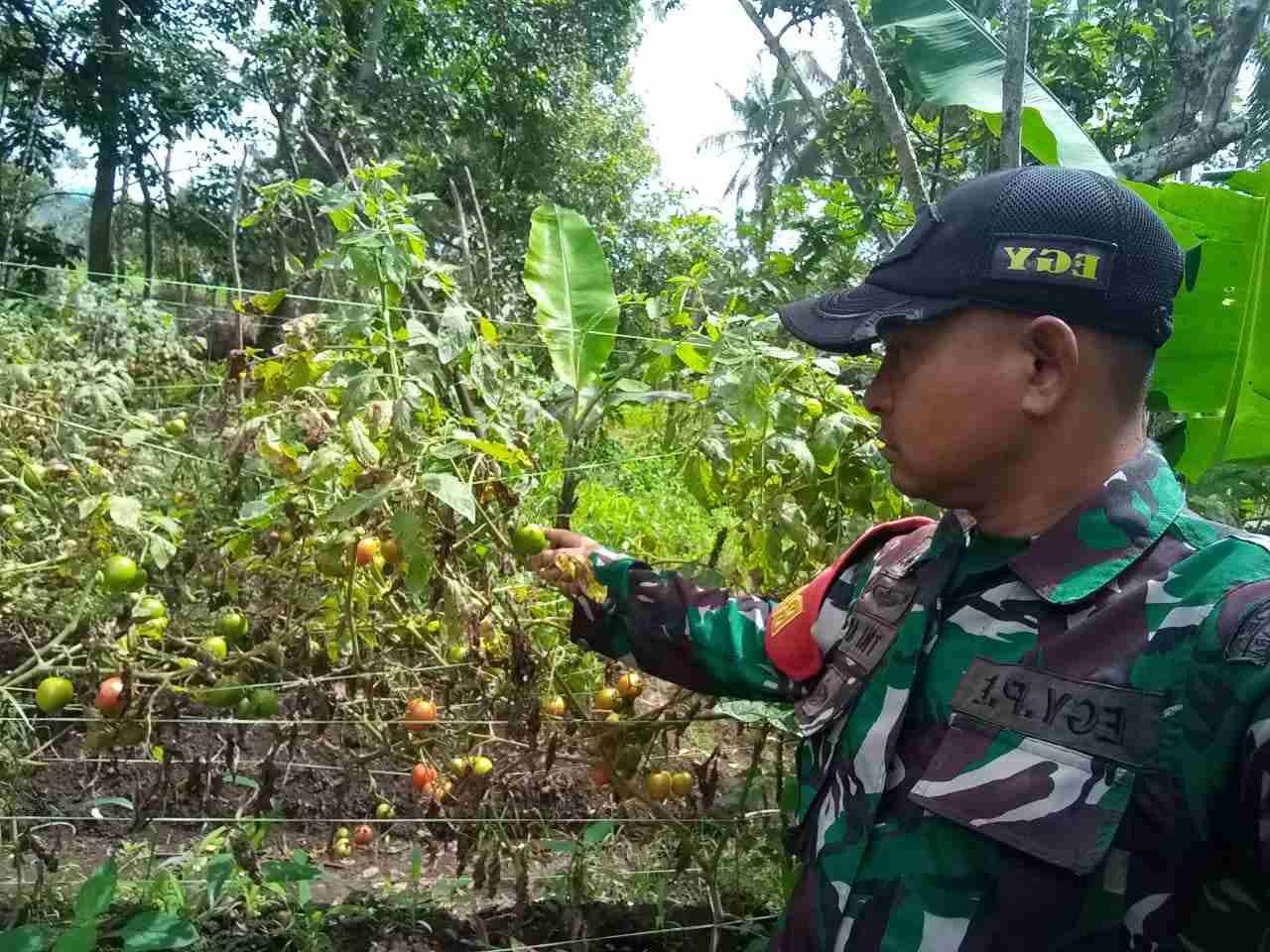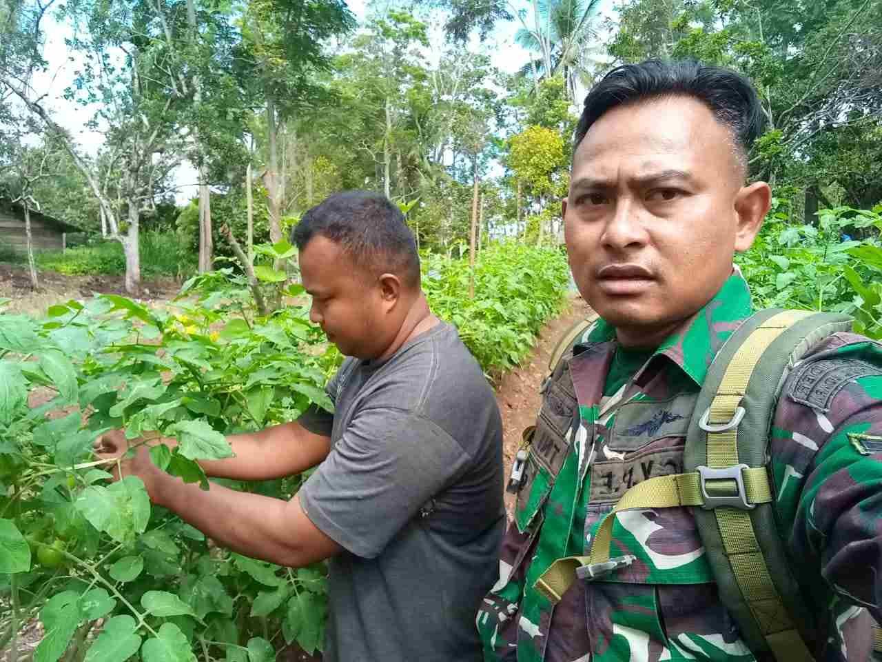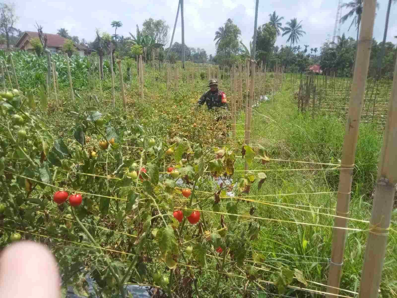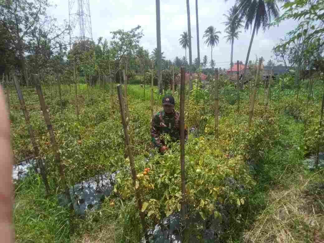 Babinsa Koramil 02/Lima Kaum Dampingi Petani Merawat Tanaman Tomat