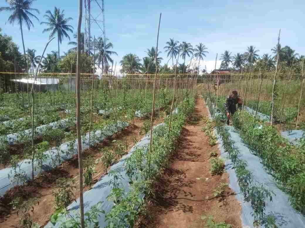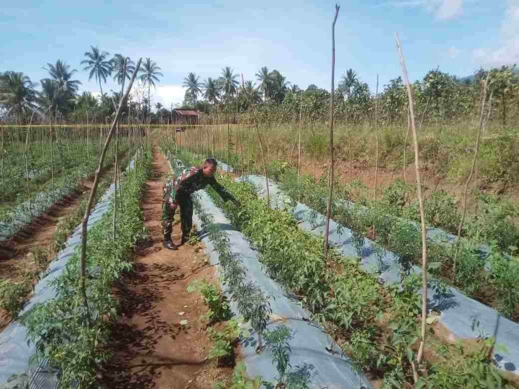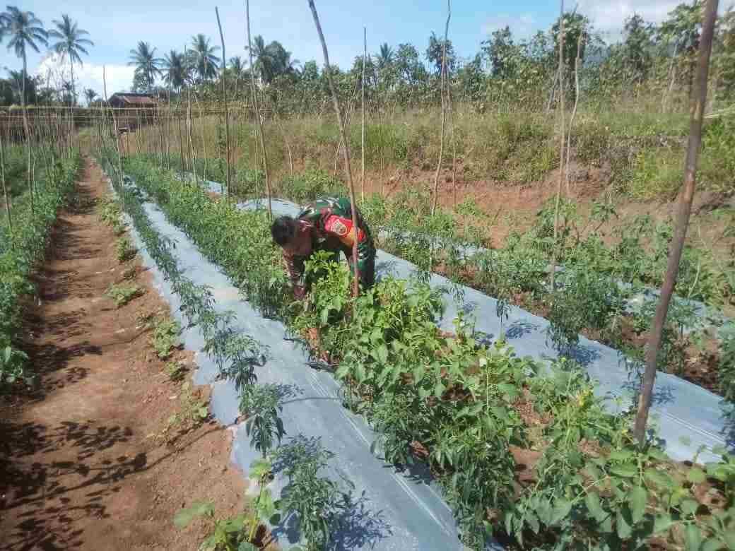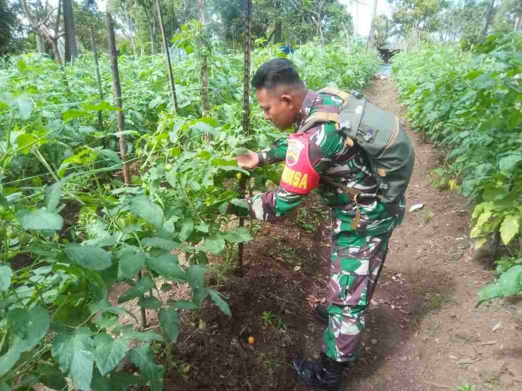 Babinsa Koramil 02/Lima Kaum Dampingi Petani Merawat Tanaman Tomat